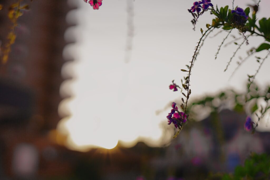 夕陽が差し込む道端には、綺麗な花が咲いていた。