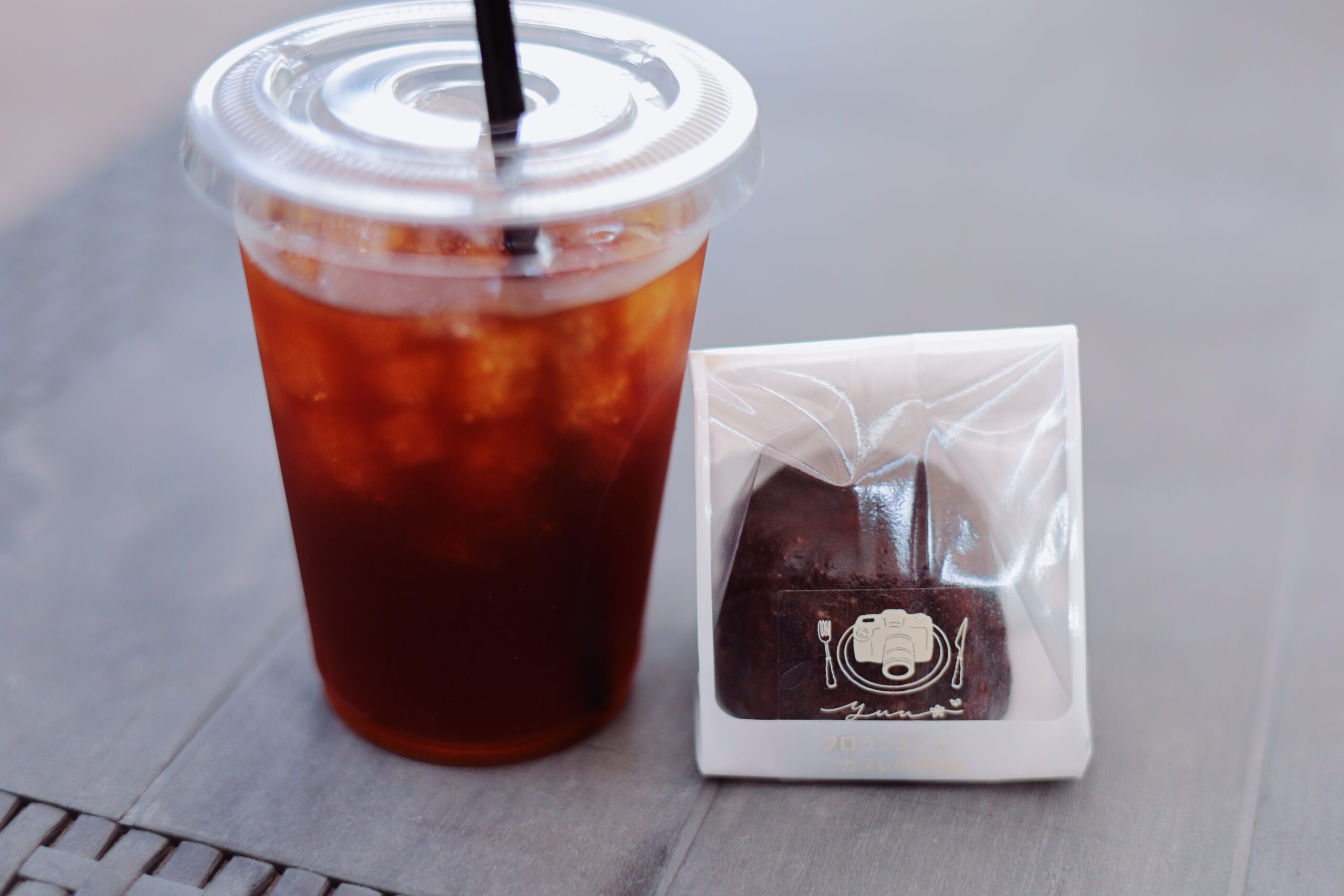 今回は、YUUの看板商品であるカヌレと、水出しコーヒーを選んで、外のベンチでいただくことに。